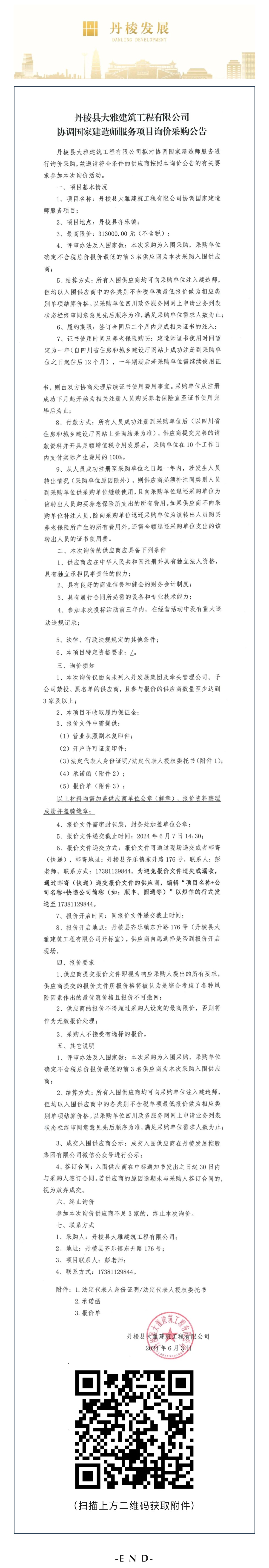 丹棱縣大雅建筑工程有限公司協(xié)調國家建造師服務(wù)項目詢(xún)價(jià)采購公告