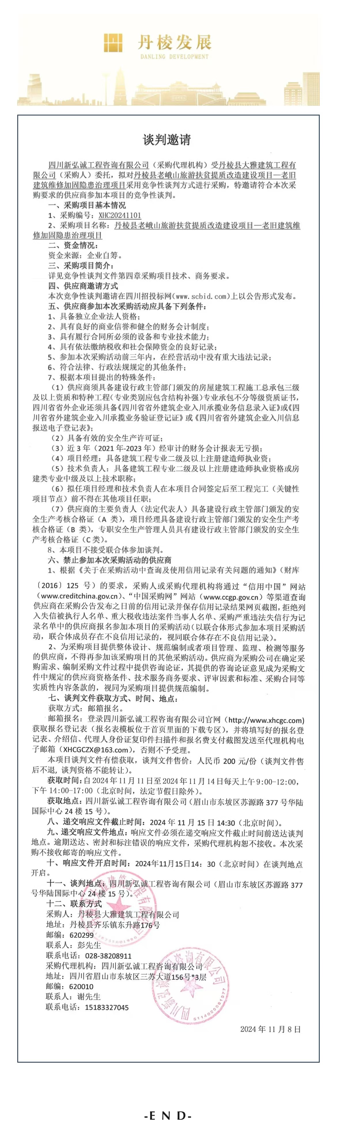 丹棱縣老峨山旅游扶貧提質(zhì)改造建設項目——老舊建筑維修加固隱患治理項目談判邀請公告
