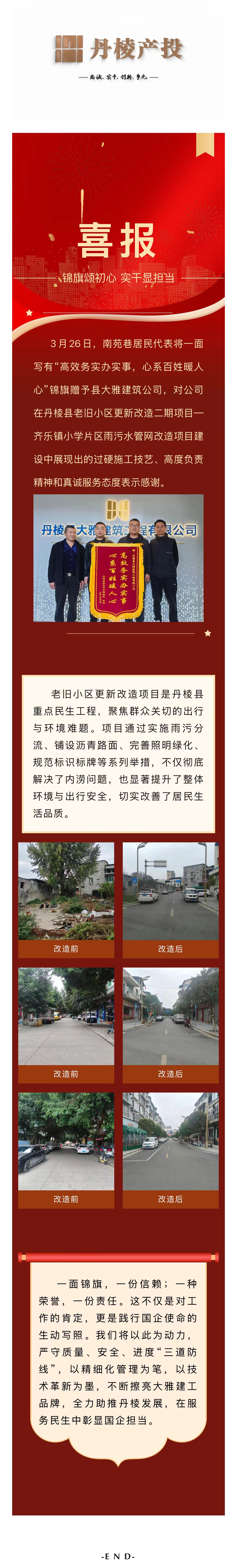 【縣大雅建筑公司】錦旗頌初心 實干顯擔(dān)當