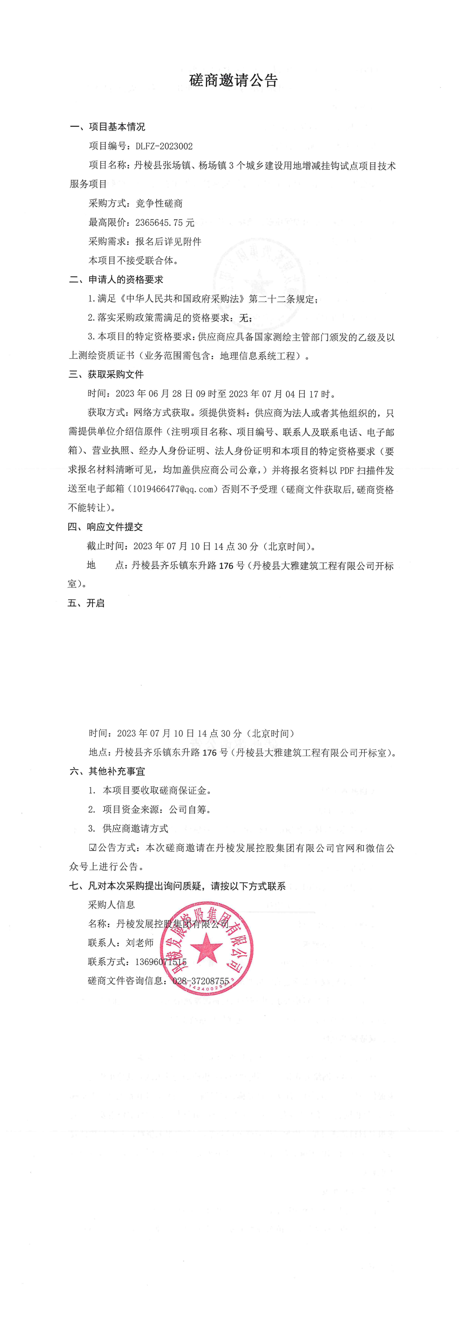 項目名稱(chēng):丹棱縣張場(chǎng)鎮、楊場(chǎng)鎮3個(gè)城鄉建設用地增減掛鉤試點(diǎn)項目技術(shù)服務(wù)項目磋商邀請公告
